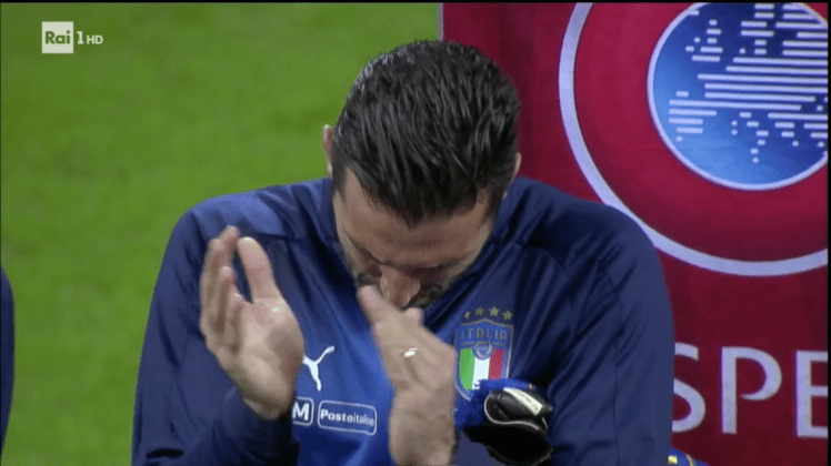 L’ultima immagine dell’inenarrabile avventura in maglia azzurra di Buffon, alla quale ha portato rispetto, talento, esperienza, onore, vittorie, non è tra i pali o in lacrime a fine partita, non è neppure nel bacio alla Coppa del Mondo 2006, ma schierato lì in mezzo, con i suoi compagni durante l’inno della Svezia, ad applaudire a testa bassa (per la vergogna?) tentando invano di coprire i fischi assordanti di San Siro.